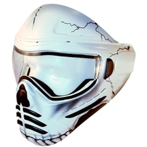 I just received this mask about 2 weeks ago and when i bought it and took it out of the plastic box i noticed there was no strap to be found. So i called the place where i bought it and they told me i had to go through the manufacturer which is savephace. Which i understand completely because it isn't their fault it wasn't in there. so i called up savephace and told them what was up and they without question sent me another one. It took a little over a week to get here, i just got it in today. When i put on the mask i was a little scared not only because the scary skull but because i feel a lot more unprotected compared to my other mask. I felt like the top of my head is out more and that my chin is centimeters away from being exposed. I don't know if i am wearing it wrong but how hard is it to put on a mask? My friend tried on the mask and his cheeks looked like they were hanging out a little. I like the mask a lot but i do not feel safe in it. I wish i tried it on before i bought the mask. The way they made the lens is amazing, i can see crystal clear and it doesn't seem like i have blinders on like other paintball goggles. I will try this mask out in the field of course and will add more to this review but for what i can say for now is if you have a narrow small face, maybe a teen or someone smaller i guess this would be a good mask for you but if your a normal guy this mask might make you a little hesitant to pod your head out from behind a bunker.