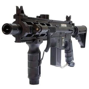 HUGE INTIMIDATION FACTOR.The gun is kinda heavy paintball gun. The sights for the gun are ok but kinda hard to see with your paintball mask on.The stock is ok...but it falls off after 5 mins of intense fighting.Laser is only good in night games and CQB.Use a remote line for the gas on this cause if you dont it takes away from the gun's looks.