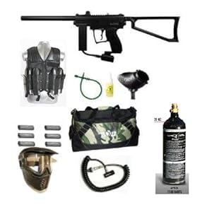 The Spyder MR1 paintball marker kit includes everything you need to play with confidence. The kit starts with the MR1 marker, which takes a beating and keeps on firing. The MR1 is equipped with a slide-out pull pin, a field-strippable bolt, and a full-length stock, producing an easy-to-operate, highly accurate scenario marker with military resilience and stability. Plus, the semi-automatic marker won't rust even when you're trekking through the wettest terrain. And thanks to the sturdy all-aluminum body and matte anodized finish, the marker can withstand anything you throw its way. Other features include a magazine-style foregrip, a standard Picatinny rail, a 12-inch muzzle-break barrel, and support for both CO2 and compressed air.